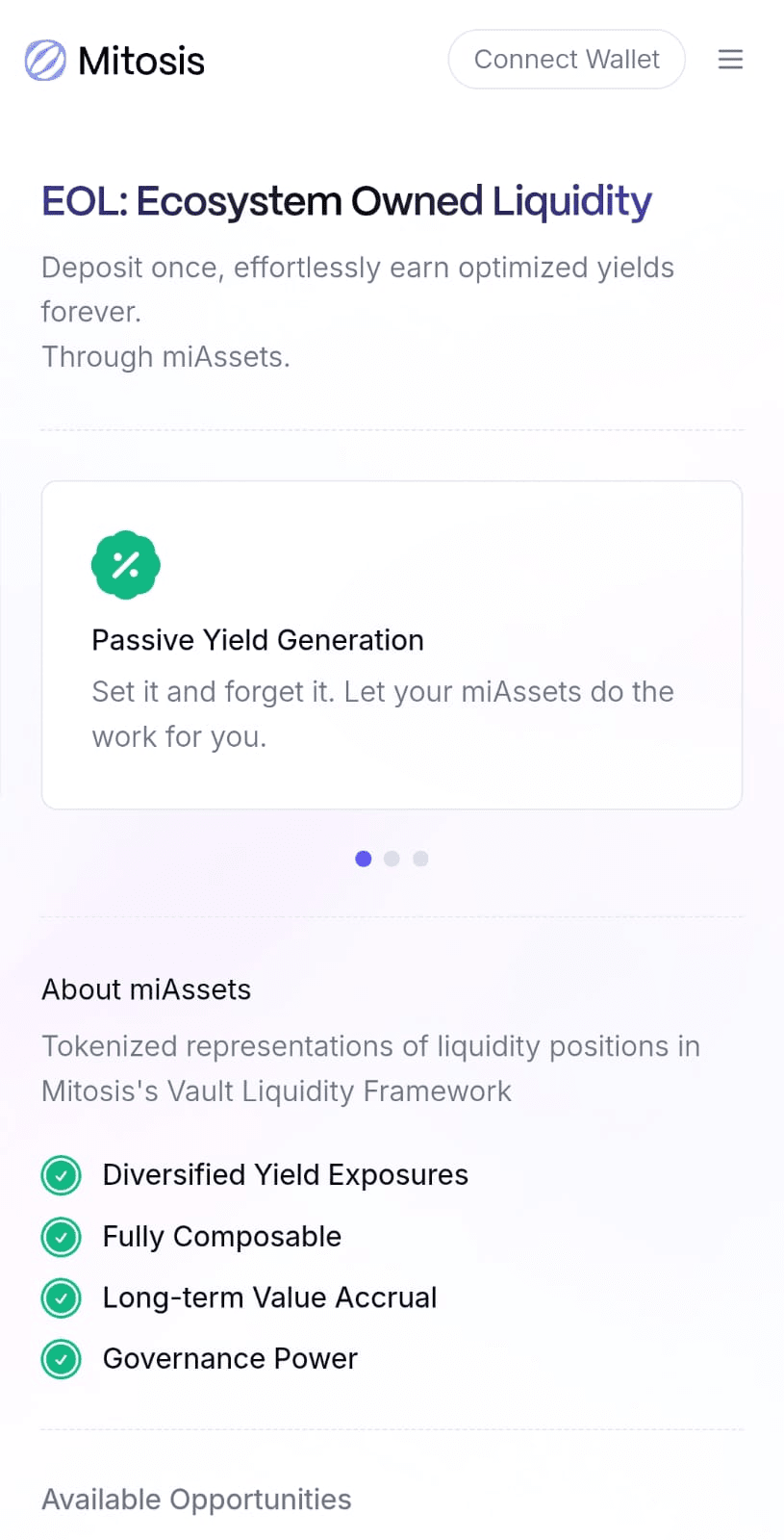 Mitosis memutus siklus itu melalui agregasi likuiditas kolektif. Dengan mengumpulkan likuiditas dari banyak pengguna, Mitosis memberikan akses bahkan kepada kontributor terkecil ke peluang hasil tinggi yang sebelumnya diperuntukkan bagi paus.