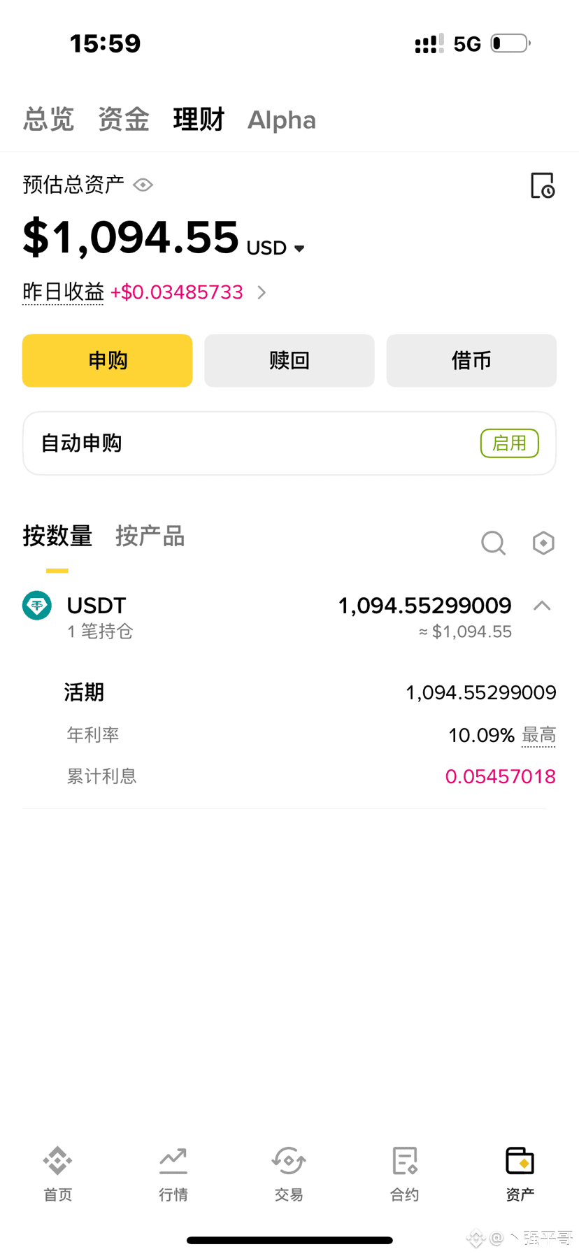 还有一点,每天刷完以后,剩下的u可以申购放到活期理财当中放着,做一下流程丰富操作,避免被封控系统监控就是一个刷分账户,等第二天在刷的时候取整数到资金里面,磨损多少一看便知,也可以减少风控,时不时的可以小玩一下合约(最小持仓,主要走个流程避免监控)。