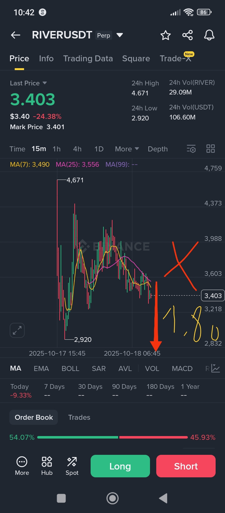 $RIVER Cryptocurrency RIVER, yang terdaftar di Binance, pada awalnya menarik perhatian besar saat diluncurkan, didorong oleh momentum perdagangan awal yang kuat dan ekspektasi investor terhadap trajektori naik yang menjanjikan. Namun, harga saat ini sebesar $4,40 menunjukkan bahwa aset telah memasuki fase korektif yang tajam — fase yang mungkin belum berakhir jika kondisi saat ini tetap tidak berubah.