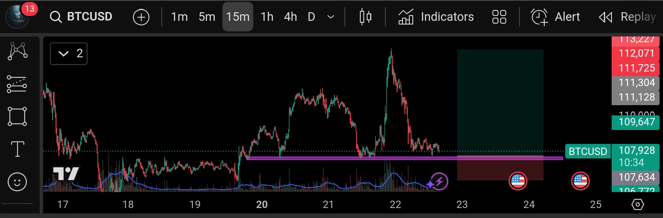 $BTC saat ini bertahan di atas zona permintaan yang kuat sekitar $107,600 – $107,900.