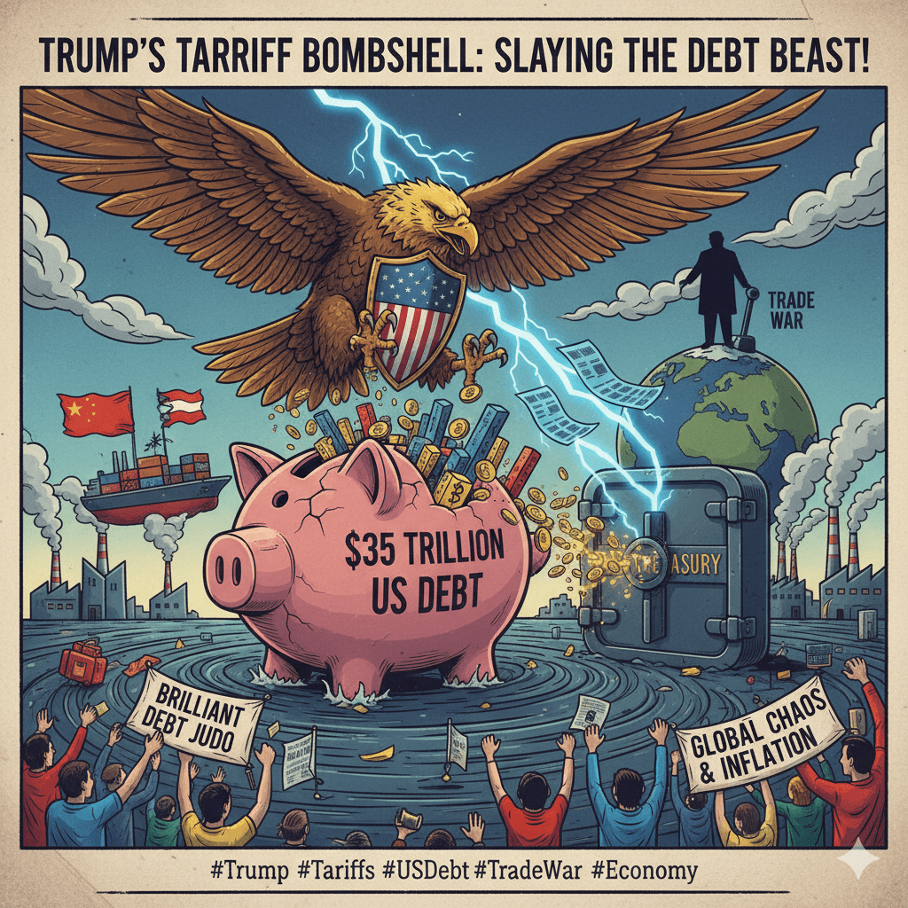Presiden $TRUMP telah memperkenalkan strategi ekonomi radikal: memanfaatkan tarif impor yang luas untuk secara agresif mengurangi Utang Nasional AS sebesar $35 Triliun.