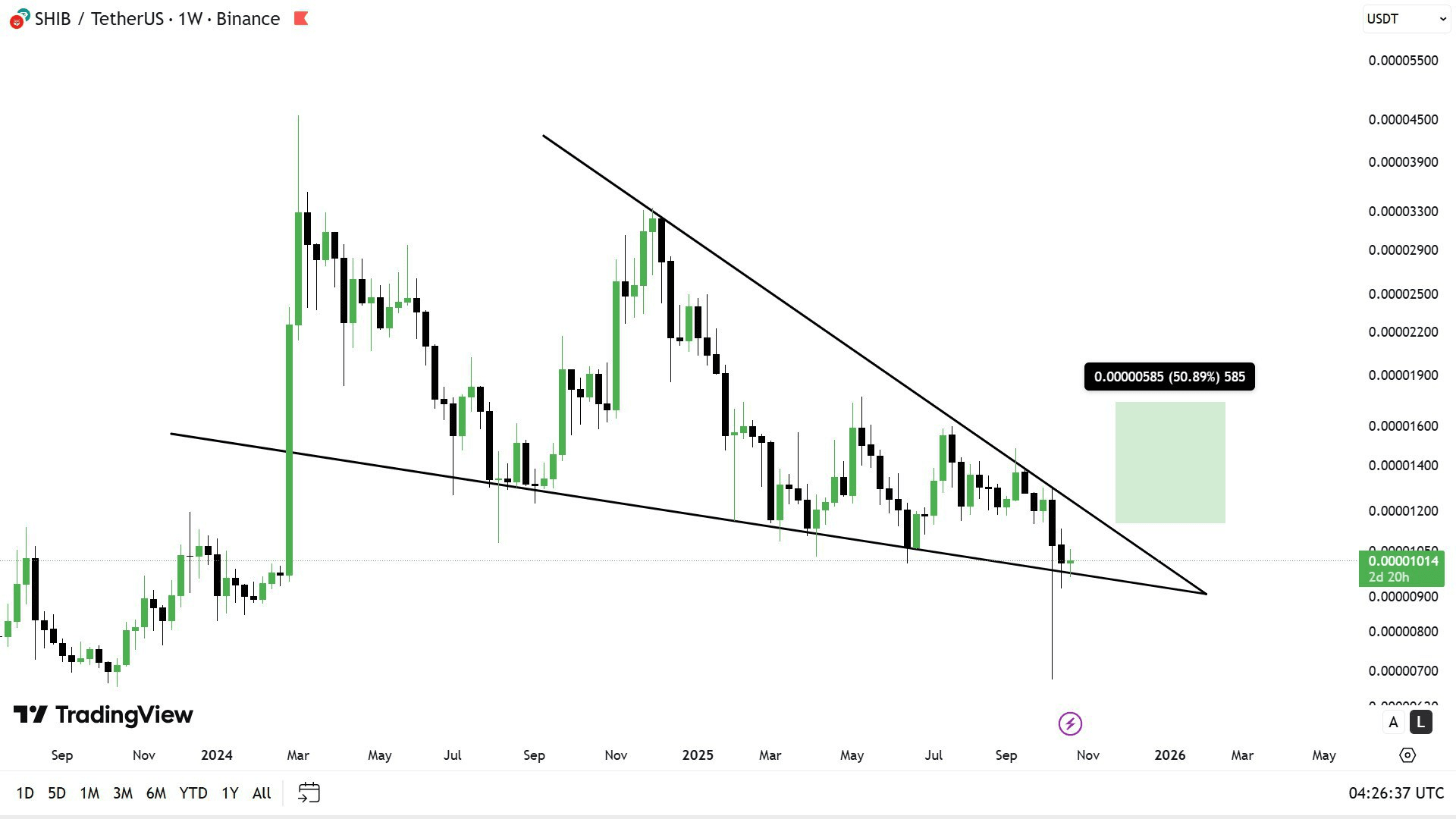 SHIB sedang membentuk pola Falling wedge di timeframe Mingguan, seluruh grafik terlihat Sempurna🚀.