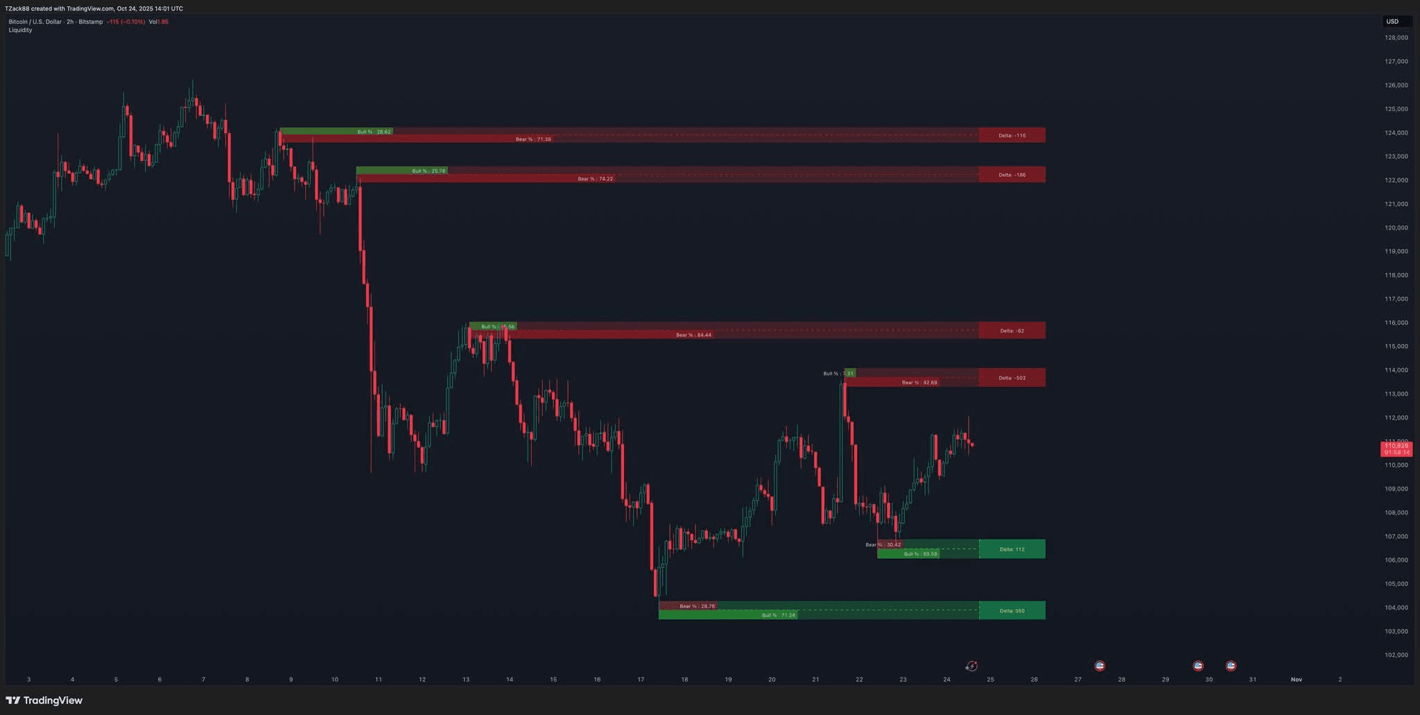 Jika delta hijau .. kemungkinan terjadi pembelian dari zona ini lebih tinggi .. dan sebaliknya juga benar ..