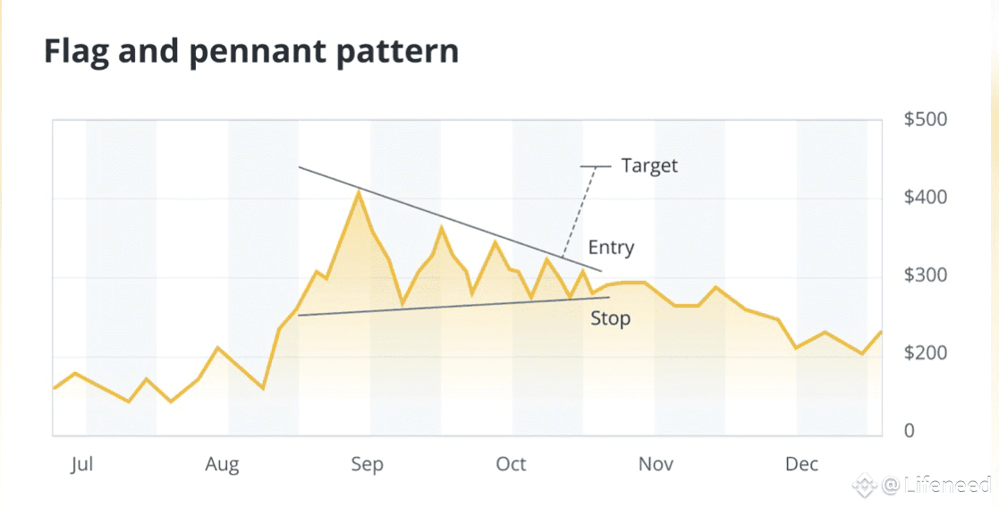 Traders often enter on a pullback within the flag or pennant to improve risk-reward.