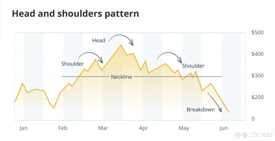 The head-and-shoulders pattern features three peaks, with a higher middle peak (the head) between two smaller ones (the shoulders), all connected by a "neckline." The inverse version indicates a potential bullish reversal.