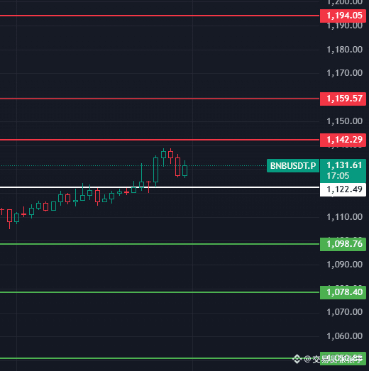 如果夜间回踩跌破1122这个位置,那1-2小时级别开始回调,下方支撑位留意1098-1078-1050这几个位置附近!#BNB走势