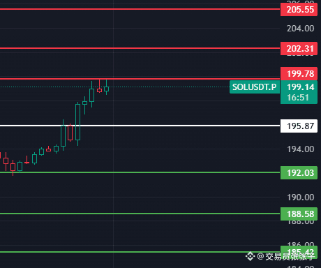 如果夜间回踩跌破195这个位置,那1-2小时级别开始回调,下方支撑位留意192-188-185这几个位置附近!#solana