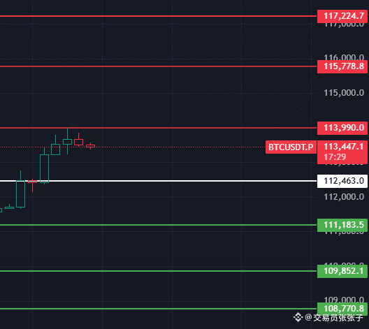 如果夜间回踩跌破112460这个位置,那1-2小时级别开始回调,下方支撑位留意111180-109852-108770这几个位置附近!#BTC走势分析