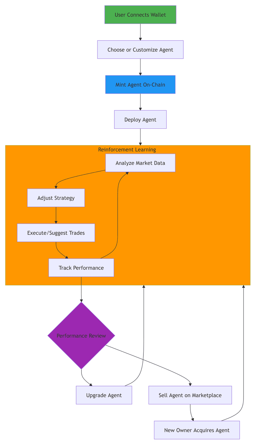 Jelajahi marketplace agen lebih awal untuk melihat strategi yang ada dan riwayat kinerja. Sesuaikan pengaturan agen Anda dengan risiko dan target keuntungan Anda. Terlibatlah dengan komunitas: bagikan kinerja agen, minta tips strategi, dan berkolaborasi pada agen yang dimiliki bersama untuk ekonomi pembelajaran bersama.