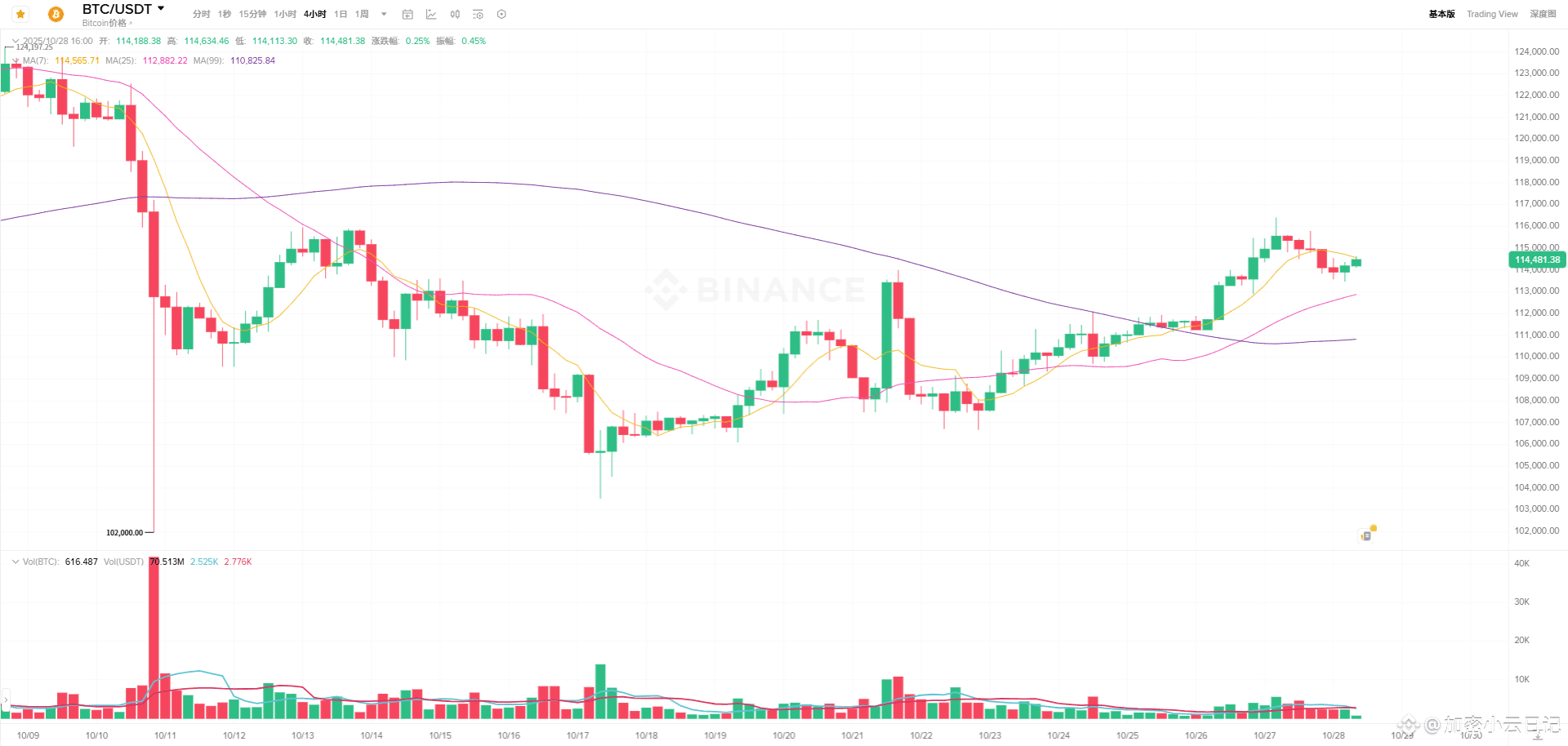 截至发稿,BTC报114,481美元,过去24小时微跌0.7%,24小时交易量超过536亿美元。虽然短期有小幅回落,但整体趋势依然积极。