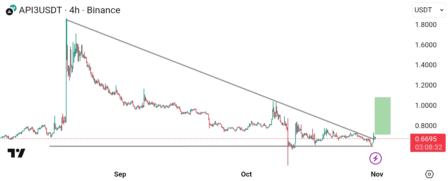 Timeframe 4H sekarang menunjukkan breakout bersih ✅ dari pola falling wedge 📊 — dan yang membuatnya lebih menarik adalah pembaruan terbaru dari API3 Foundation 🔥, di mana mereka mengumumkan integrasi Oracle baru yang memperluas jangkauan data Web3 mereka 🌐.