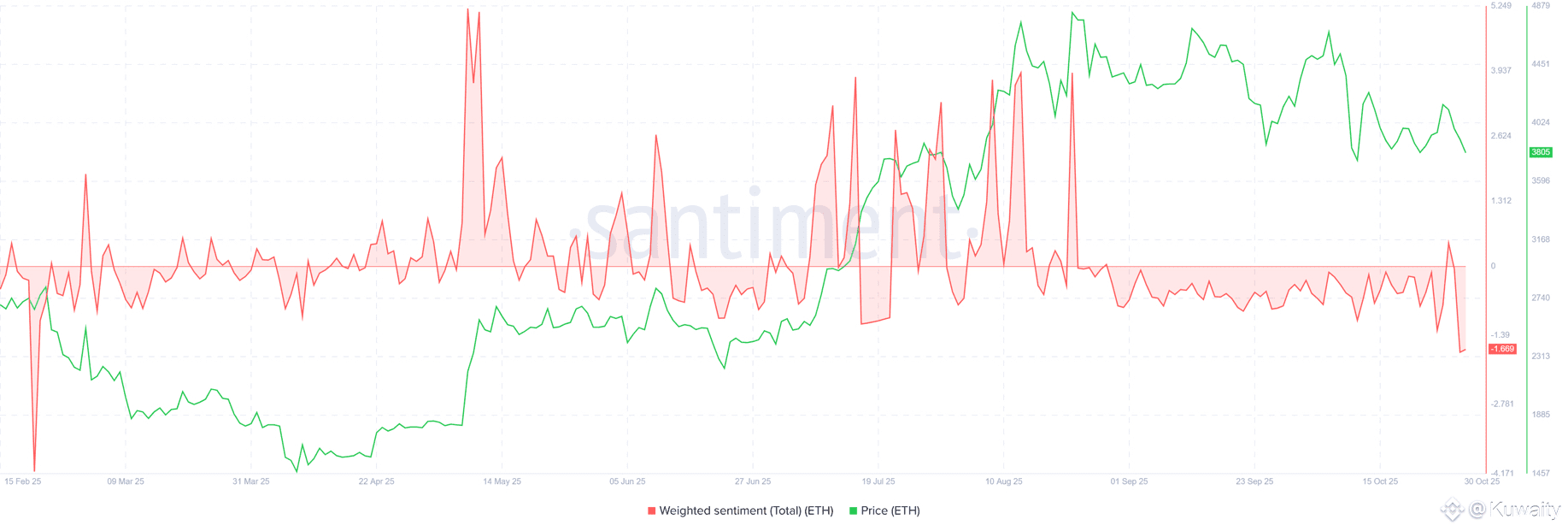 توضح المشاعر الموزونة لإيثريوم. يأتي المصدر: سانتيمنت
