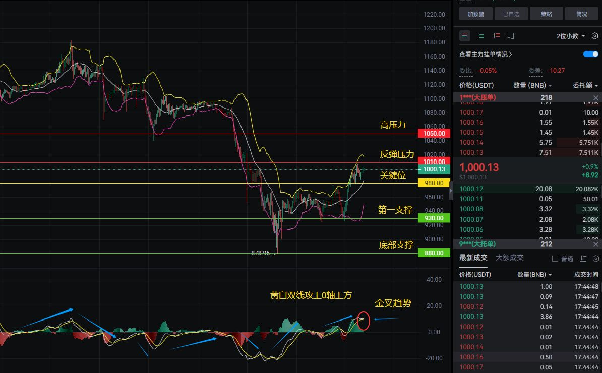 Jika ingin membeli dengan sedikit modal, tunggu hingga 980 untuk bertindak! 980 adalah titik pemisah antara bullish dan bearish, jika menembus, pergi ke 930 untuk mendapatkan aset yang lebih murah.