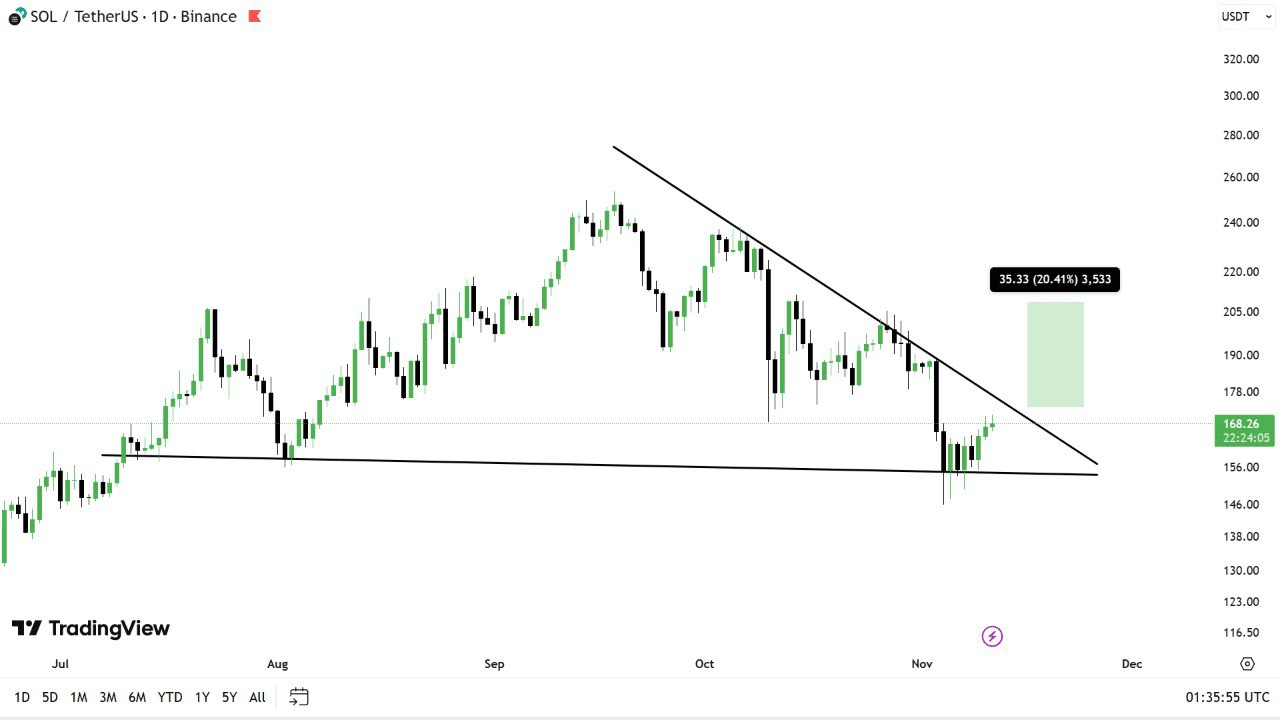 Seperti yang bisa Anda lihat, itu berada di ambang ❗️ Patah dari pola segitiga simetris dalam kerangka waktu harian.