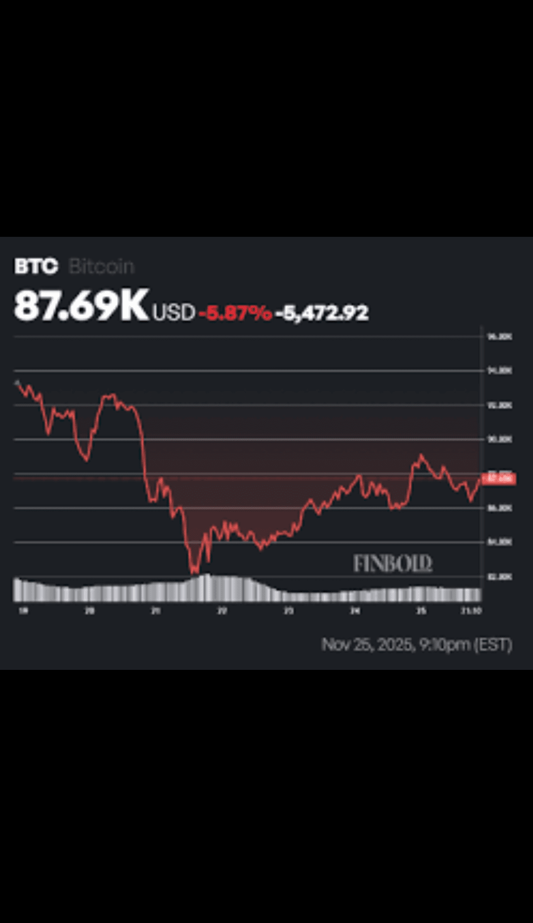 Hingga hari ini, Bitcoin diperdagangkan sekitar ≈ $86,300, mencerminkan penurunan ~ 5–6% dalam 24 jam terakhir dan penurunan yang lebih tajam dari puncak terbaru.