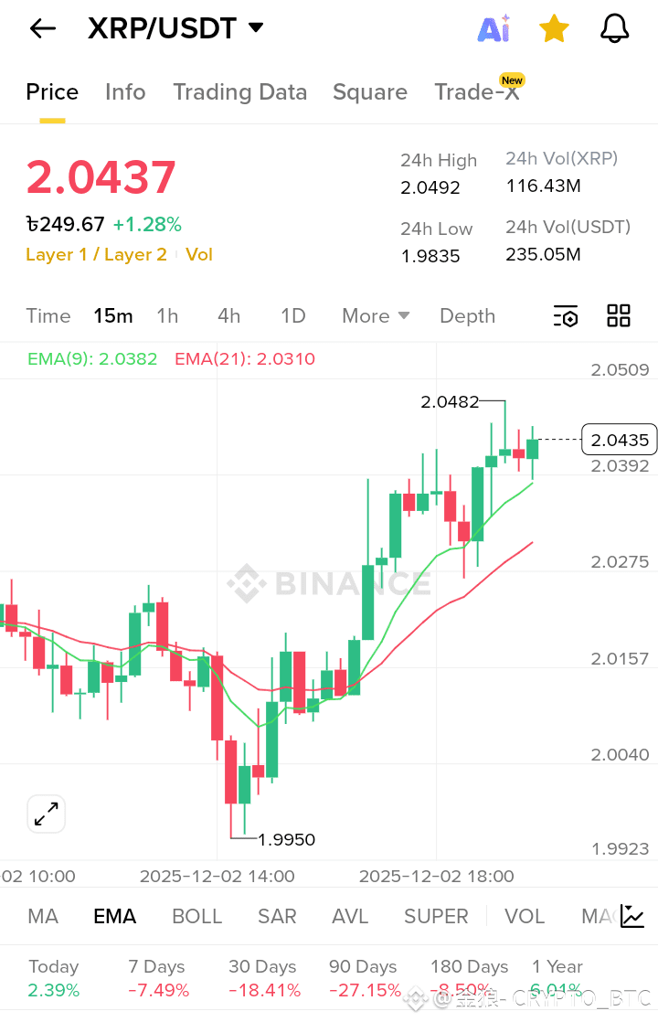 XRP 的价格在略高于 2 美元后保持稳定。下一个主要阻力位在 2.30 美元,自 9 月以来这一水平多次限制了上涨。若能强势突破,价格可能进一步冲向 2.50 美元甚至 3.00 美元。XRP ETF 已吸引超过 6.6 亿美元资金,预计管理资产规模很快可能超过 10 亿美元。然而,代币仍低于 50 日均线,显示动能仍在形成中。