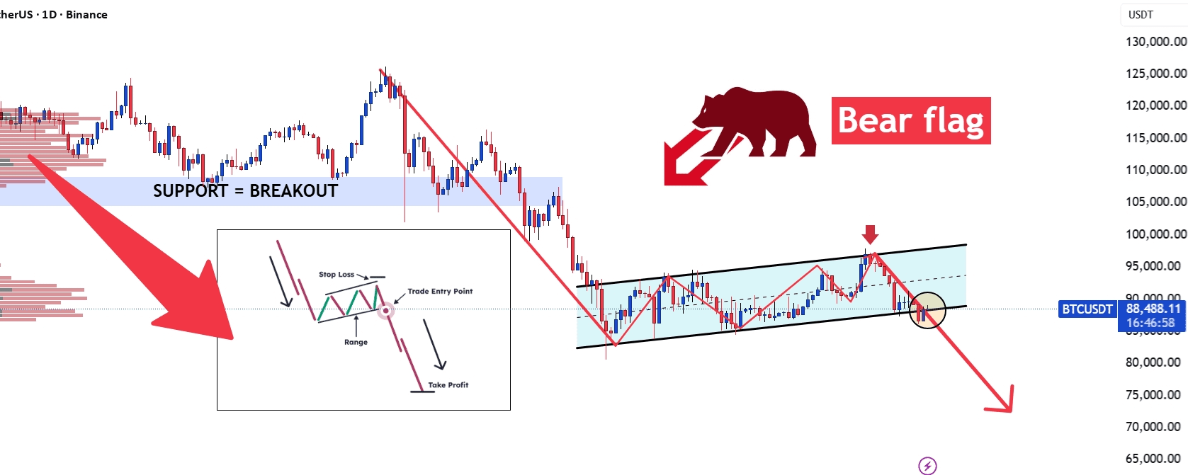 BTCUSDT kehilangan momentum bullish dan memasuki fase risiko tinggi, dengan kedua fundamental makro dan struktur teknis condong ke skenario bearish.