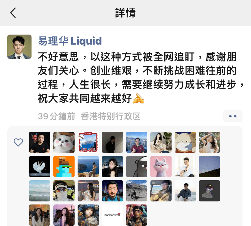 随后,我看到了华子的朋友圈,更多的是强调创业的不易,要坚强,以及被网盯的无奈!