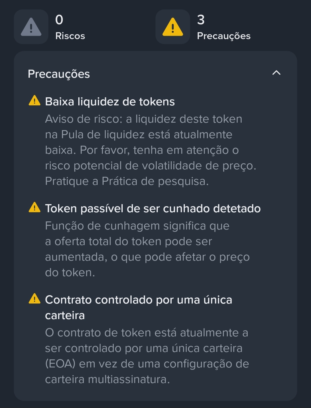 Mas é fundamental ler sempre as informações relativas ao contrato, liquidez e emissão de tokens antes de investir.
