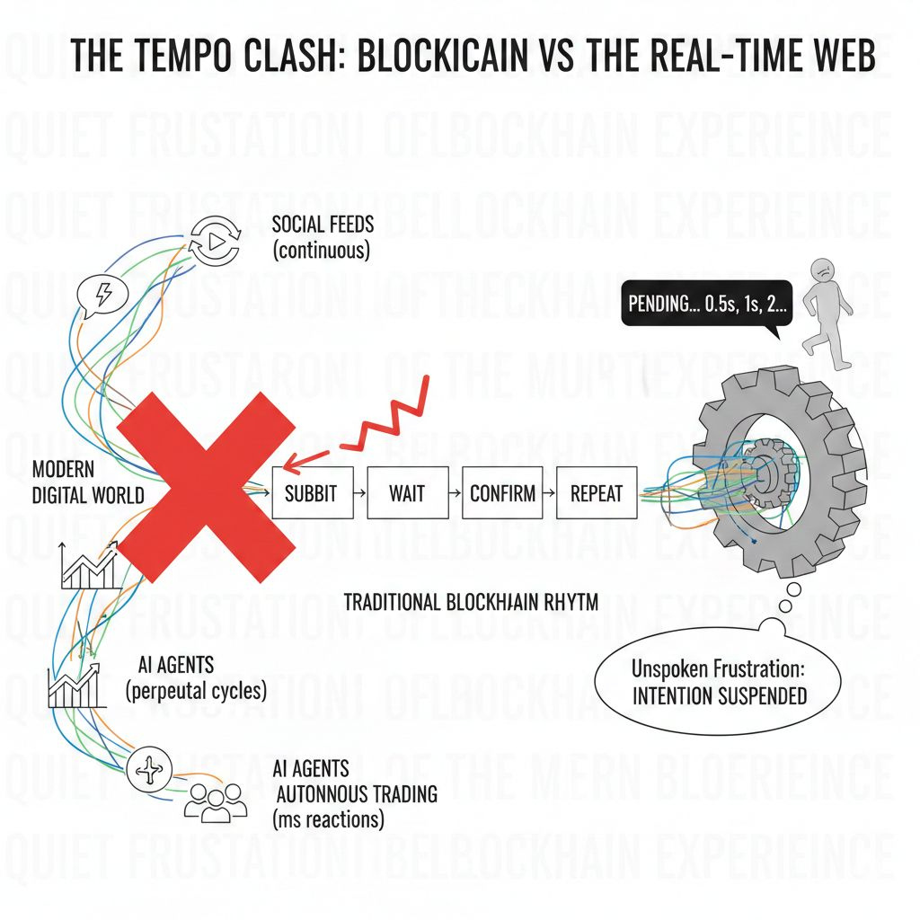 There is a quiet, almost unspoken frustration that lives inside the modern blockchain experience, and most people have felt it even if they cannot quite name it. You press a button to confirm a transaction, and for a brief moment your intention feels suspended in midair. It exists, but it has not yet become real. You refresh your wallet, you glance at the pending status, you calculate whether the fee you chose was generous enough. In that small gap between action and confirmation, there is a subtle tension. For years, we accepted that tension as the necessary cost of decentralization, because when Bitcoin first demonstrated that strangers could coordinate trustlessly across the globe, the miracle outweighed the inconvenience. When Ethereum expanded the idea into programmable contracts that could hold logic as well as value, the waiting felt like a small price to pay for participating in something revolutionary. Even when high-performance systems like Solana dramatically increased throughput and reduced latency, the underlying rhythm remained the same: submit, wait, confirm, repeat.