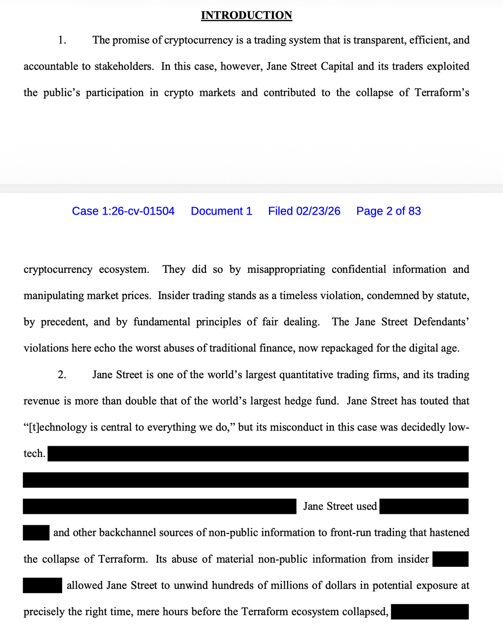 2026年2月,一份来自纽约南区联邦法院的诉状让早已尘封的Terra崩盘案突然重回聚光灯下。Terraform破产清算机构Wind Down Trust的管理员Todd R. Snyder指控华尔街顶级做市商Jane Street涉嫌内幕交易与证券欺诈,核心指向一个非常“炸裂”的命题:2022年5月的那场崩盘,或许不只是算法稳定的系统性失败,而是一场早有预谋的抢跑。