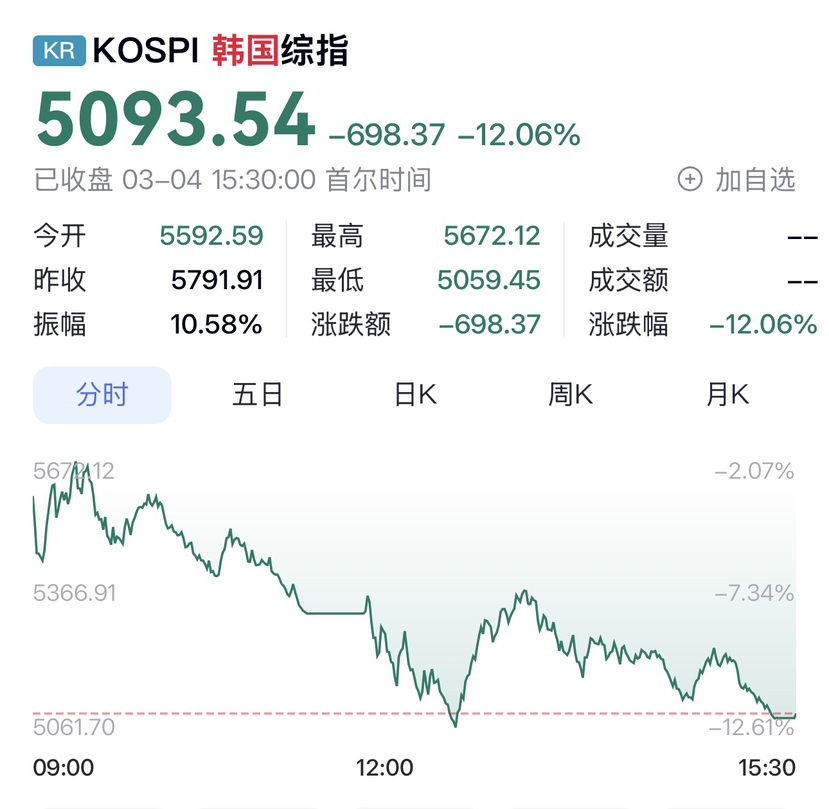 Crollato! Il mercato azionario coreano è crollato del 12% e ha attivato nuovamente la sospensione! Oro e argento in caduta libera, i fondi affluiscono freneticamente verso il dollaro! Chi può scampare alla valanga di vendite?