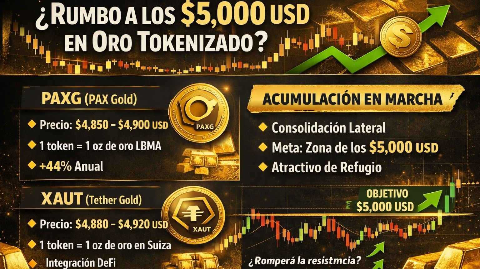 Il mercato di PAXG e XAUT riflette la forza dell'oro e la sua crescente adozione nell'ecosistema cripto. L'attuale modello punta a una possibile accumulazione prima di tentare di superare i 5.000 USD, un livello che segnerebbe una pietra miliare storica e potrebbe attrarre ancora più interesse istituzionale.