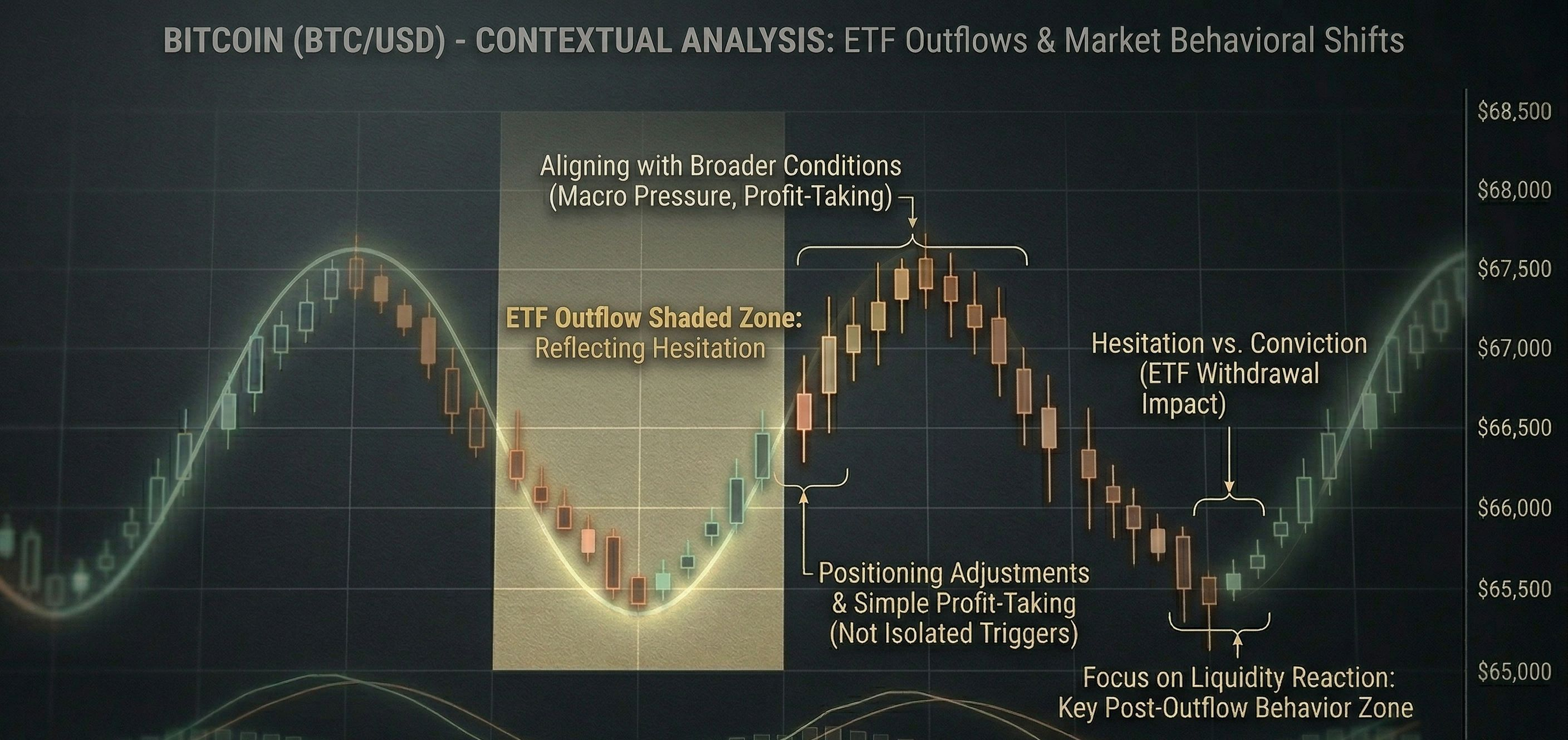 ETF outflows often reflect hesitation more than conviction. They tend to align with broader conditions — macro pressure, positioning adjustments, or simple profit-taking — rather than acting as isolated triggers. What matters more is how price behaves once that liquidity leaves.