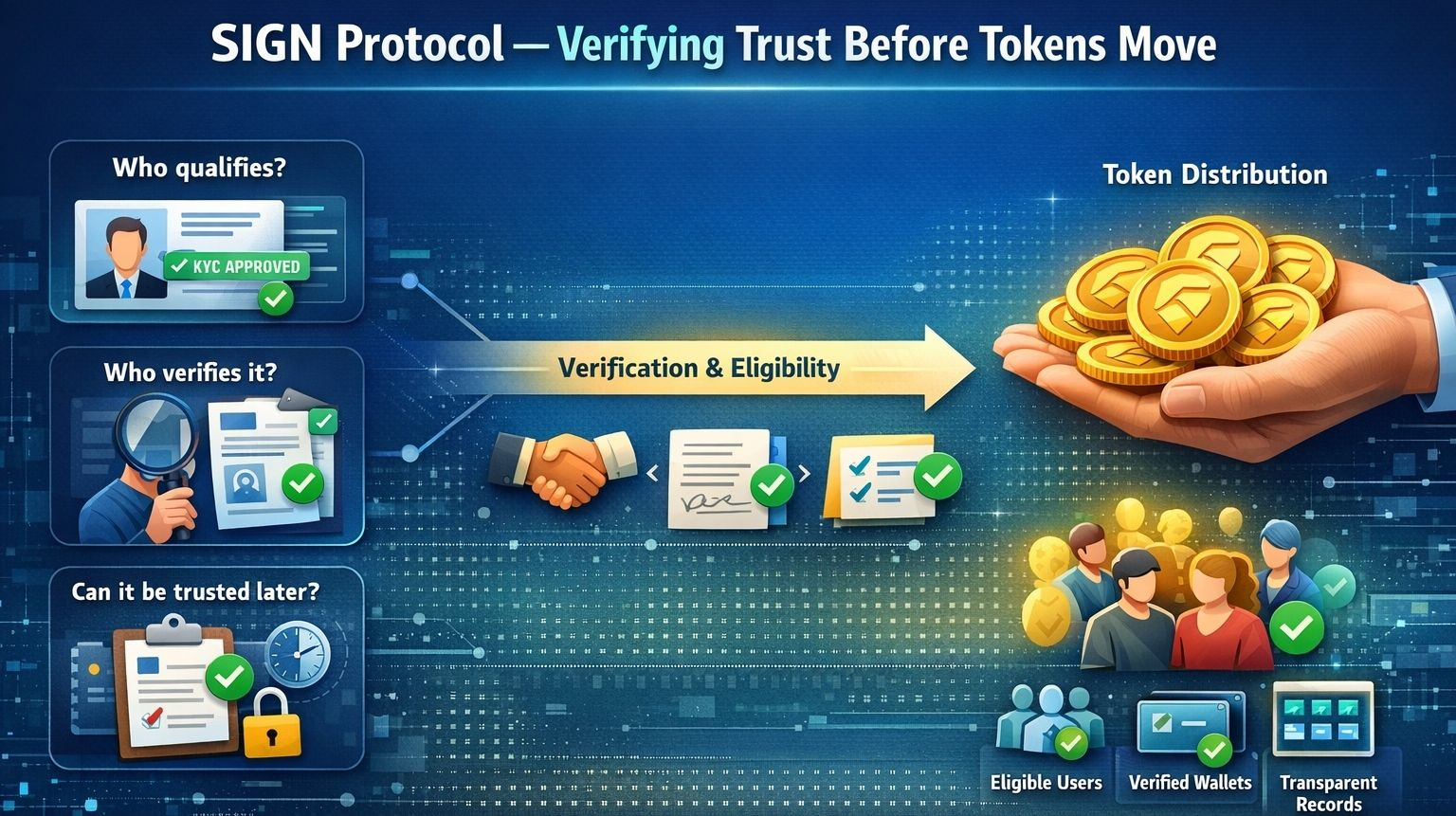 And I think that’s why the token distribution piece matters more than it first appears. People often talk about token distribution like it’s just marketing mechanics rewards, unlocks, claims, incentives. But token distribution is actually one of the clearest places where verification either holds up or falls apart. Once money enters the picture, vague eligibility becomes a liability. You cannot just say “we checked.” You need a system that can actually show what was checked, who checked it, and whether the conditions were met.