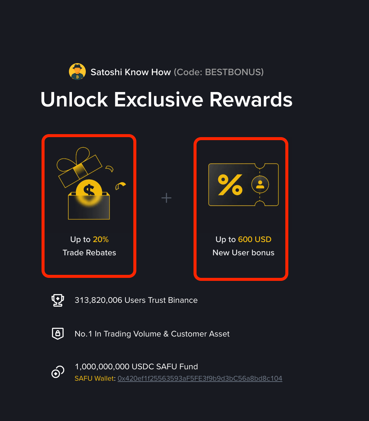 In questo momento, i nuovi utenti possono sbloccare fino a $600 in premi più uno sconto del 20% sulle commissioni di trading a vita — ma solo se si registrano tramite il corretto promotional link o utilizzano il giusto codice referral di Binance.