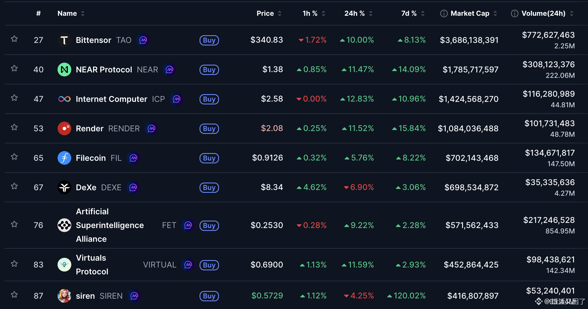 在这波浪潮中,TAO的表现尤为亮眼,社交互动量激增141%,交易量增加120%,充分说明市场热度并非孤立事件,而是AI板块资金涌入的集中体现。