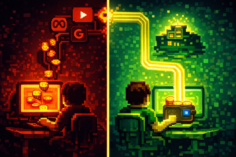 Right now, most of that budget goes to Google. Meta. Ad platforms. The studio pays to show you a banner ad, you maybe click it, you maybe install the game, you maybe stay. The studio has no idea if you’re a real player or a ghost account. The ROI is blurry at best.