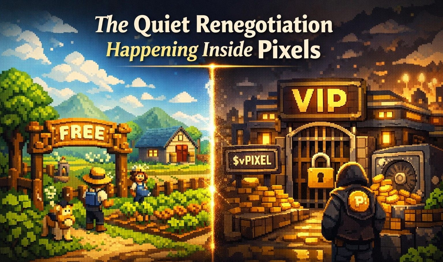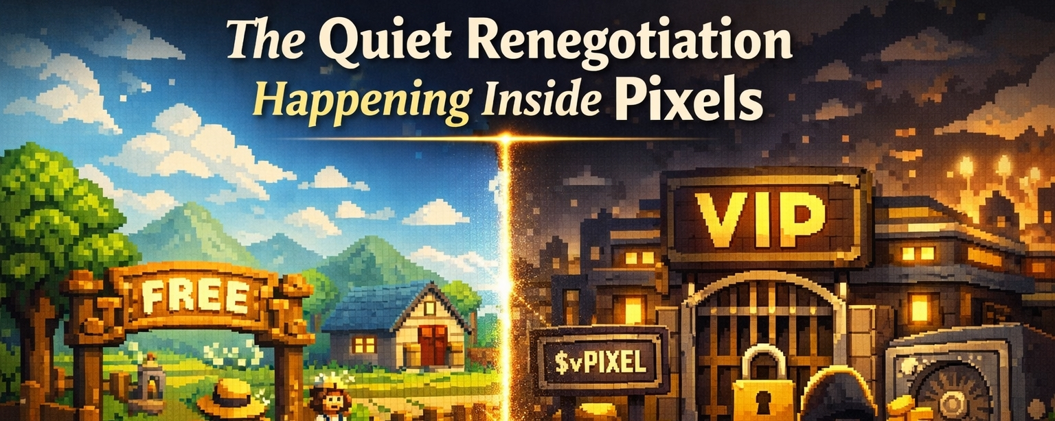 But here's what I think about when I consider the VIP shift. The original accessibility of Pixels was not incidental to its identity. It was the pitch. A Web3 game you could play without significant upfront cost, in a sector where barrier-to-entry had historically excluded the people the space claimed to be serving. When the game pulled in a million daily users, a meaningful portion of those users were there because the door was open. Closing the door more carefully in the name of economic sustainability is rational. It's also a different game, aimed at a different player, with a different implied promise.
