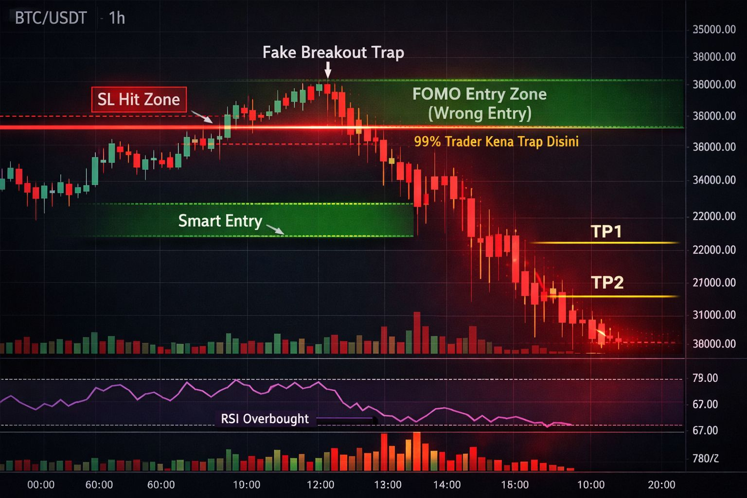 Banyak trader, terutama yang masih berkembang, terjebak pada satu pola mematikan: fake breakout + entry impulsif + tanpa manajemen risiko jelas.