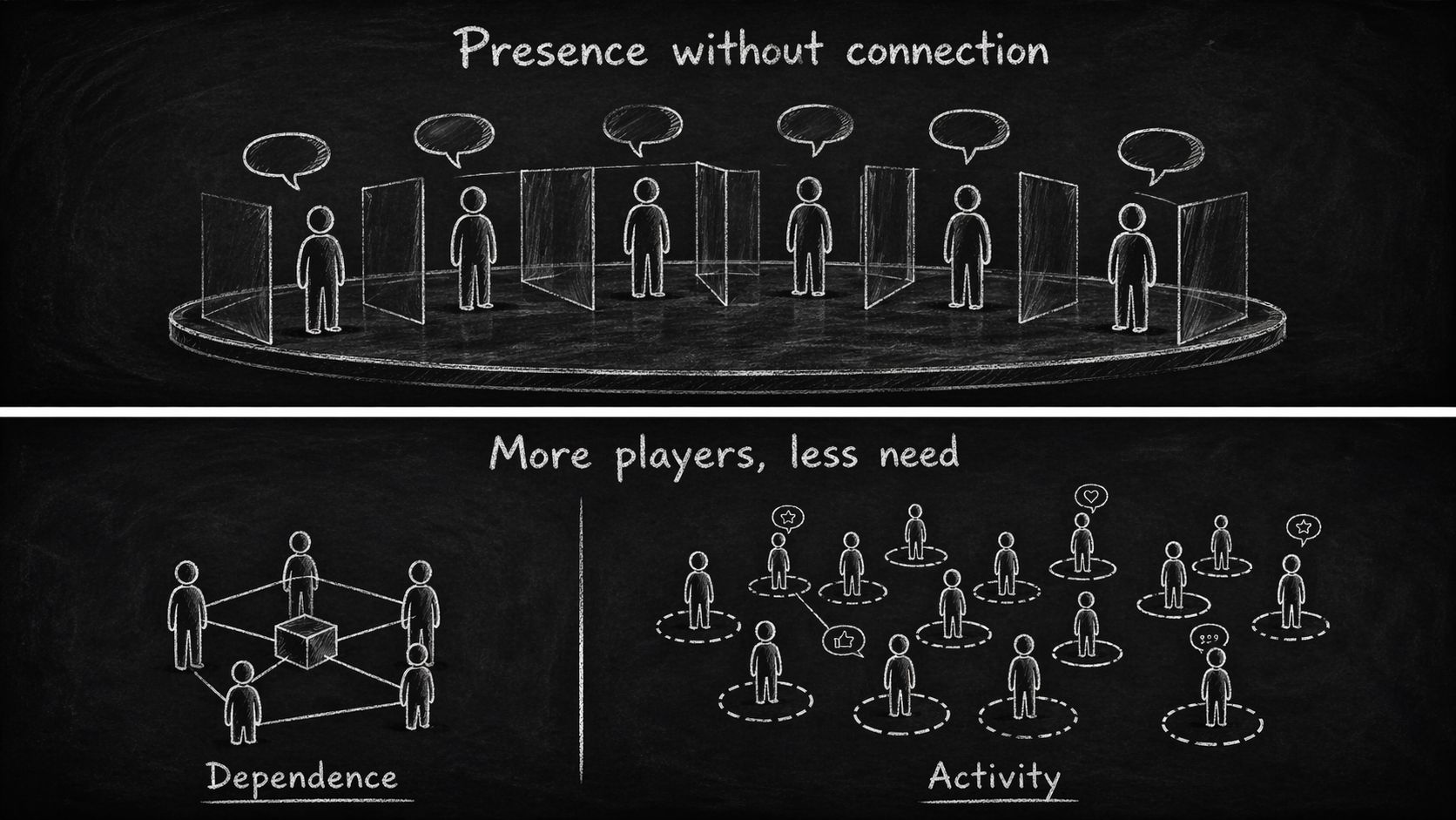 If a game can feel socially full without players truly depending on each other, then what exactly is the social layer optimizing for?