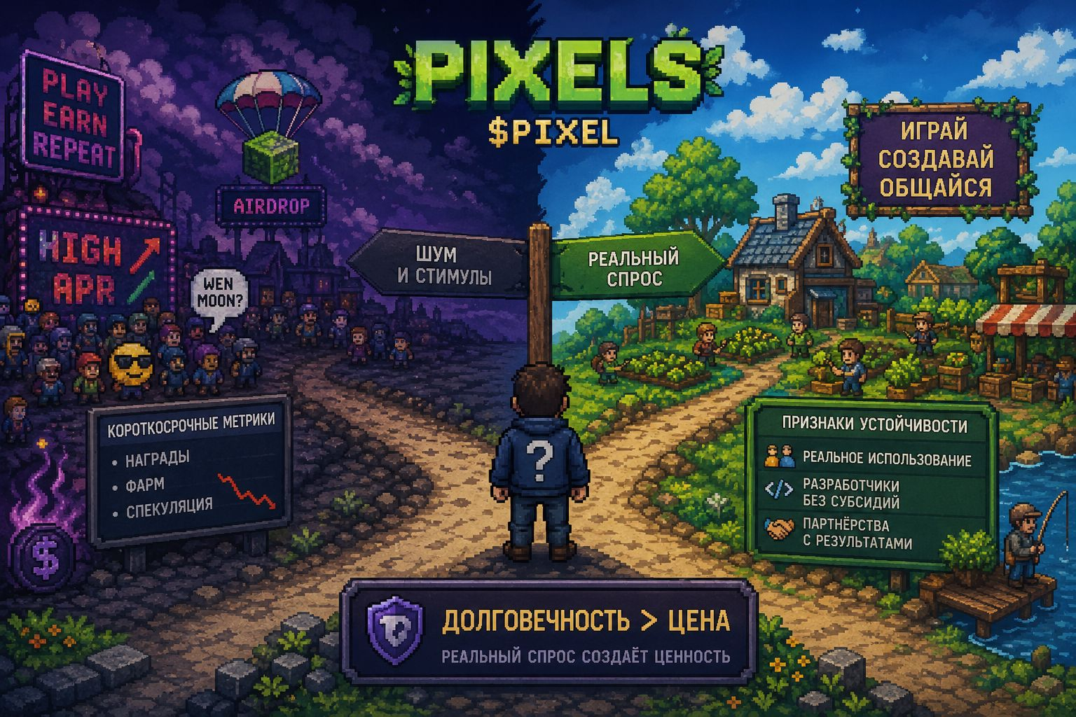 Я не считаю Pixels слабым проектом. Но и поводов для безусловного оптимизма пока не вижу. Это рабочая модель, которая еще не прошла главный стресс-тест — жизнь без избыточных стимулов.