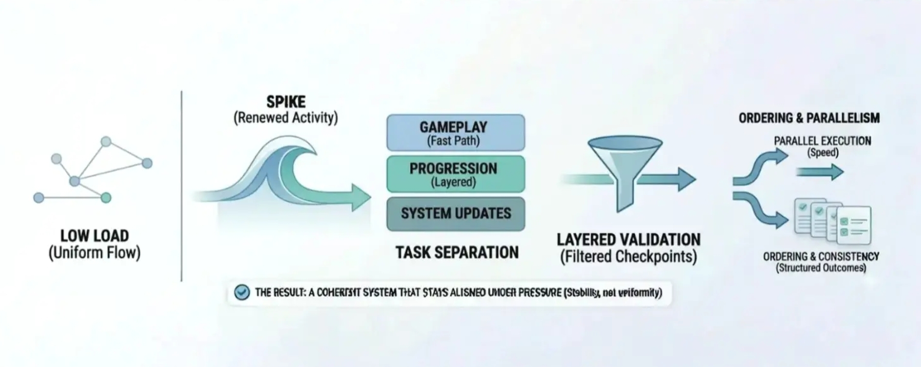 Worker scaling and workload distribution only matter when they actually reduce concentration. If everything still passes through a narrow path, adding capacity doesn’t solve much. What makes a difference is how evenly the system spreads activity when demand rises.