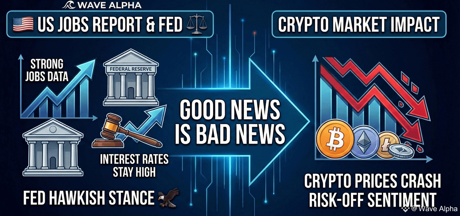 Báo cáo việc làm Mỹ mới nhất mạnh hơn dự kiến, nghe có vẻ tốt cho kinh tế, nhưng lại là "gáo nước lạnh" cho thị trường tài chính. Dữ liệu này làm giảm hy vọng Fed sẽ cắt giảm lãi suất vào tháng 12 (khả năng giảm chỉ còn dưới 40%). Lãi suất neo cao khiến dòng tiền rút khỏi tài sản rủi ro như Crypto.