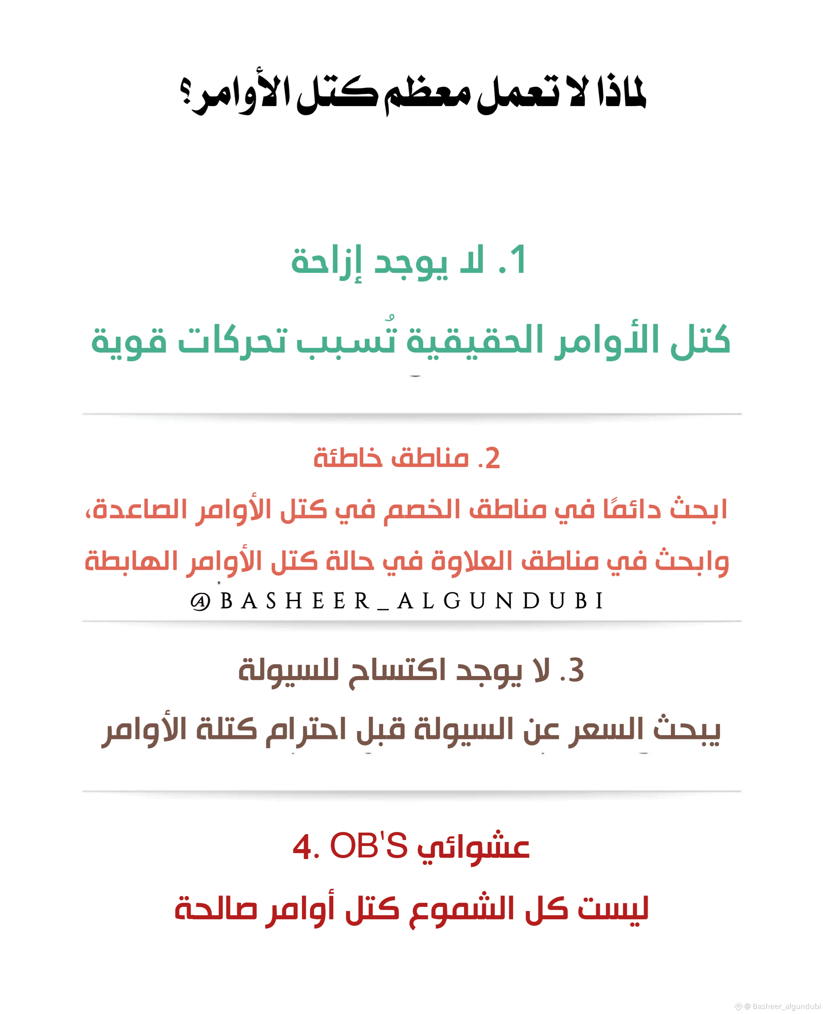 ابحث دائمًا في مناطق الخصم في كتل الأوامر الصاعدة، وابحث في مناطق العلاوة في حالة كتل الأوامر الهابطة