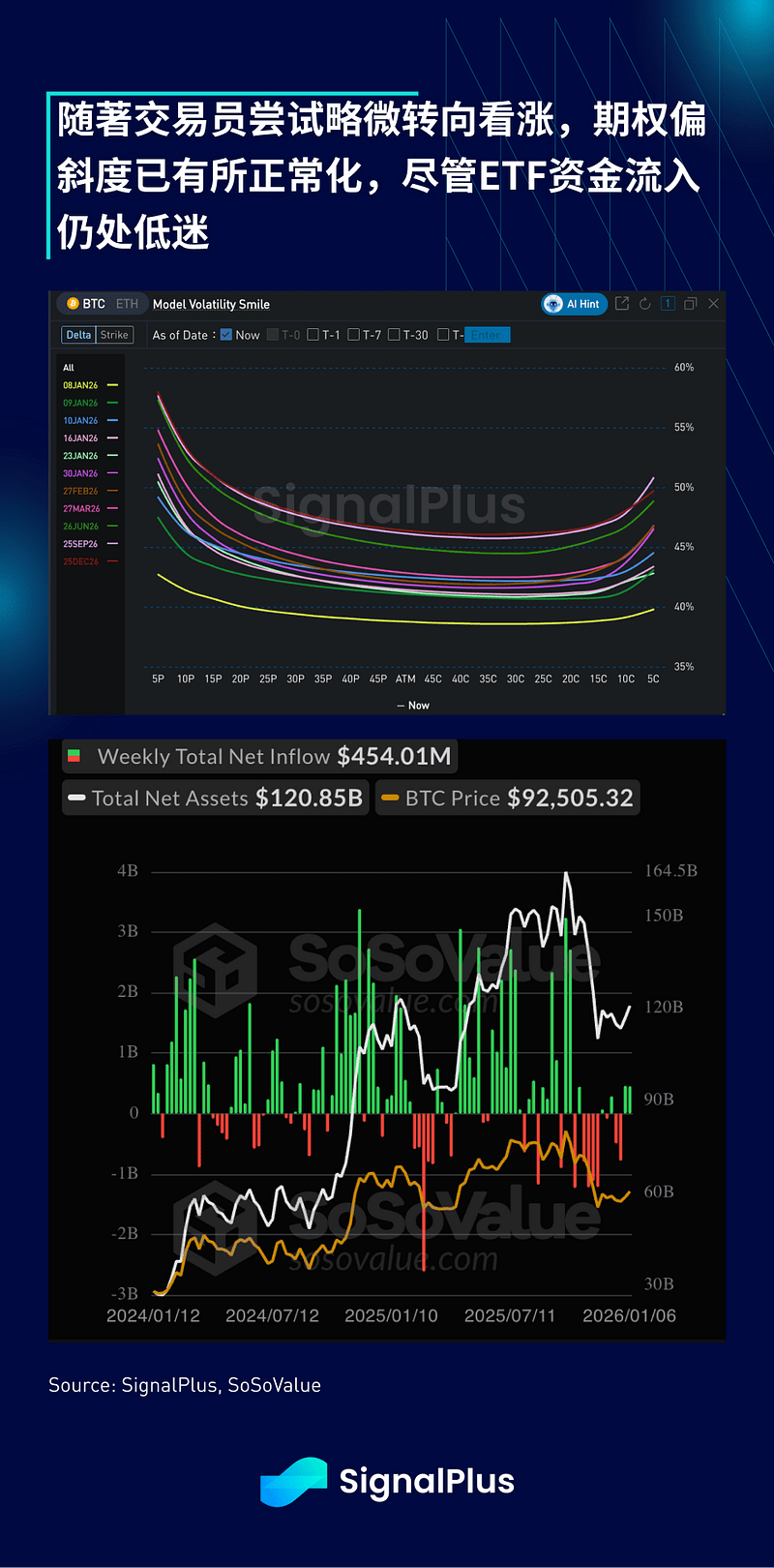 Negli ultimi tempi, la skewness delle opzioni rialziste si è leggermente migliorata, specialmente intorno al livello di 100.000 dollari, poiché gli operatori hanno iniziato a guardare con un po' più di ottimismo al BTC, anche se in generale rimangono cauti, dato che gli afflussi di fondi negli ETF da novembre sono rimasti modesti. L'attività di mercato è generalmente fiacca, in attesa di un catalizzatore più forte per rompere l'intervallo di 87.000–95.000 dollari che si è mantenuto da novembre. In bocca al lupo, buona fortuna nel trading.