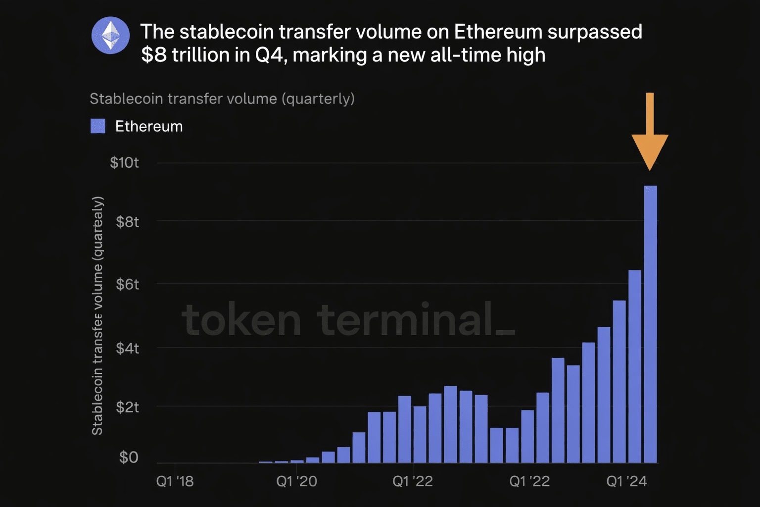 In soli tre mesi, il valore totale degli scambi in stablecoin è salito a 8.000 miliardi di dollari - un dato che dimostra l'espansione rapida dell'utilizzo effettivo della blockchain.