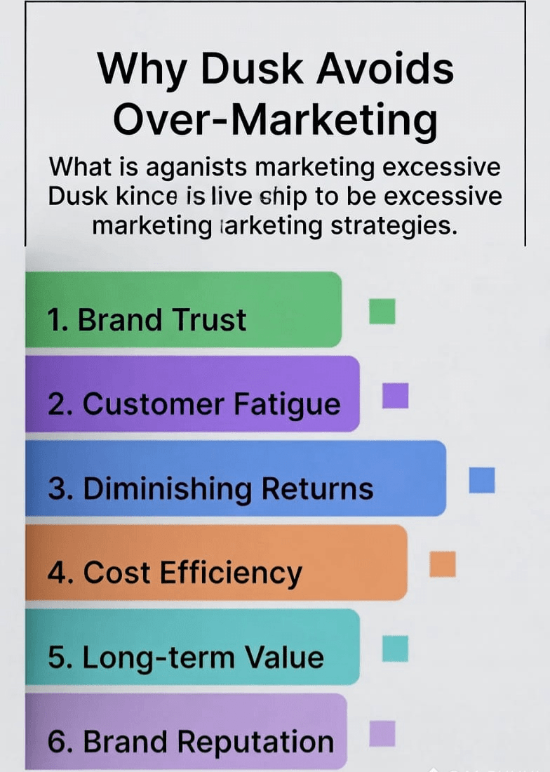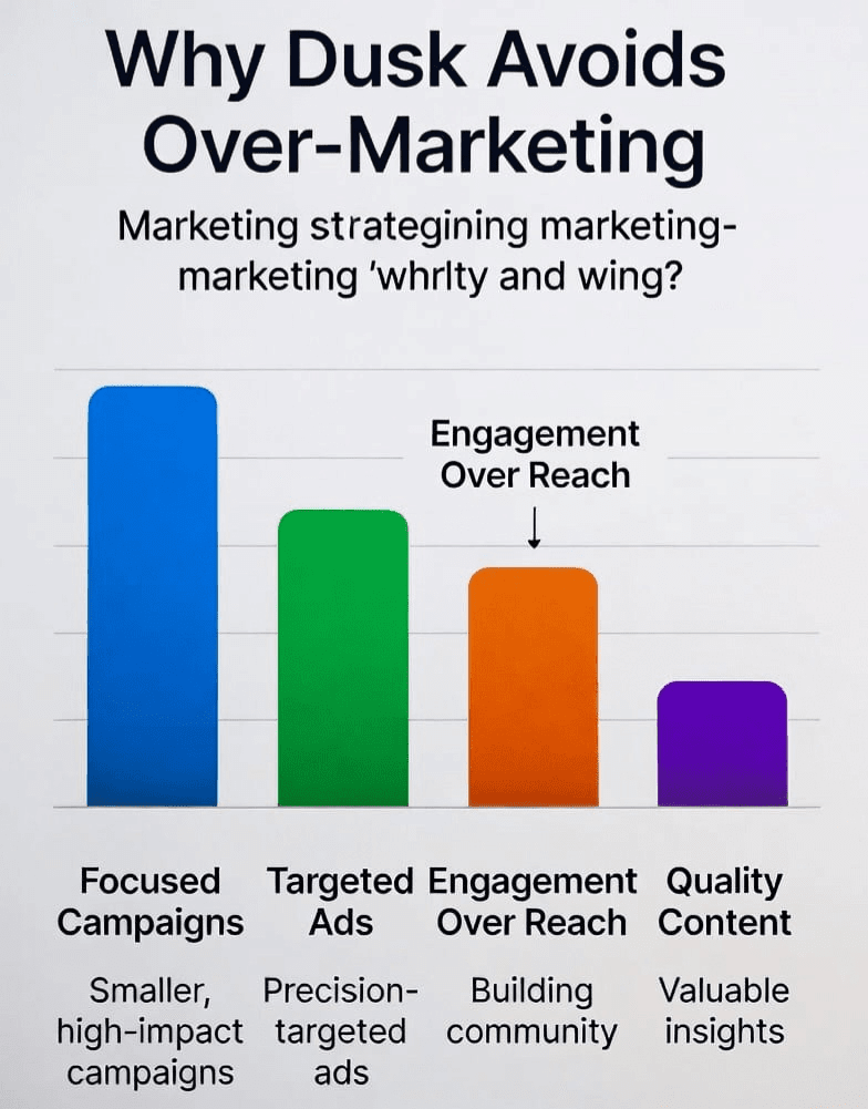 Dusk non utilizza il marketing per coprire ciò che manca — lo utilizza per evidenziare ciò che esiste già. L'obiettivo non è vendere una storia, ma invitare alla partecipazione coloro che si interessano al vero progresso.