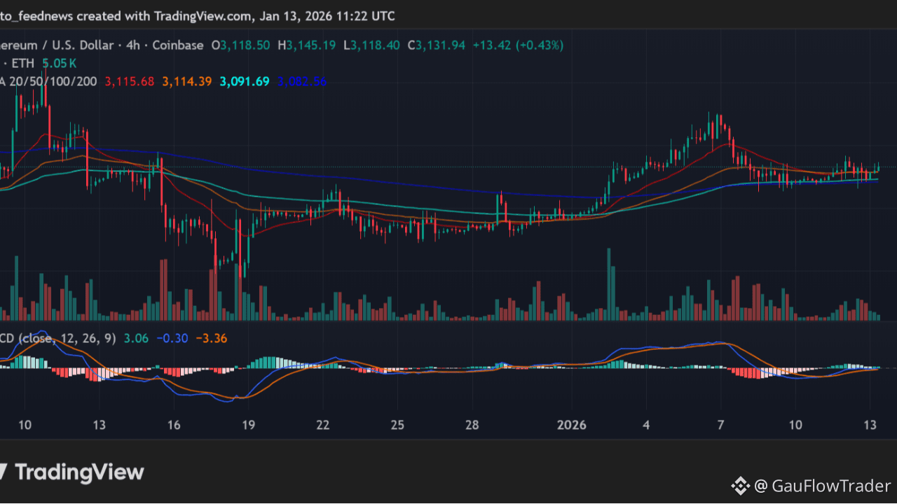 $ETH is currently trading near $3,134, down roughly 5% from its January highs, and compressing within a symmetrical triangle that has been developing since November — a structure typically preceding expansion.