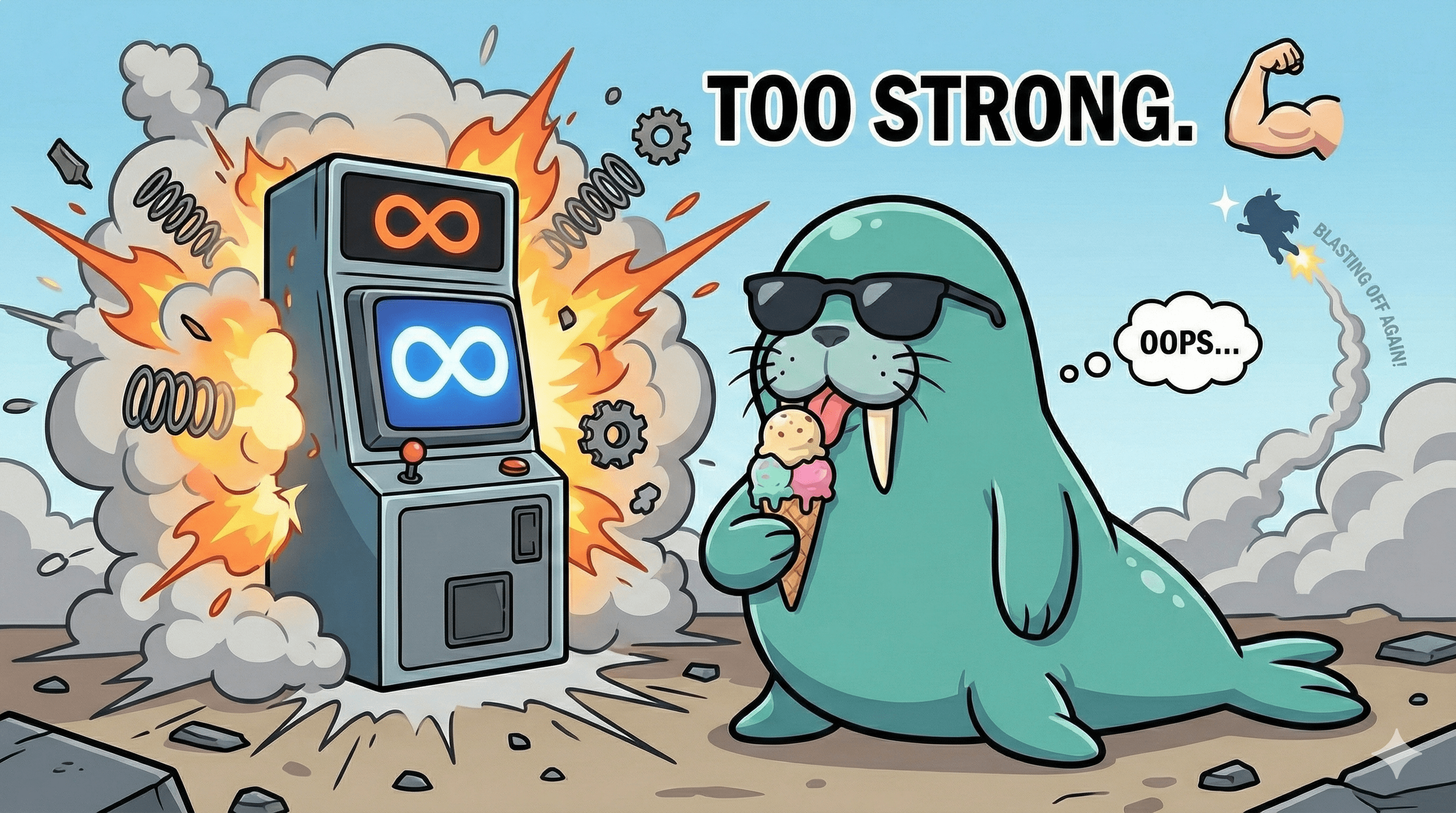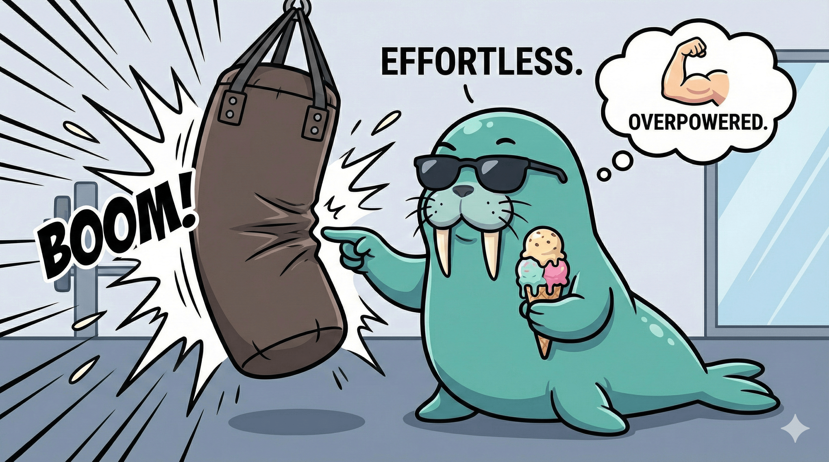Wally rappresenta @Walrus 🦭/acc un protocollo, tenendo in mano un gelato (indicando nessuna pressione).