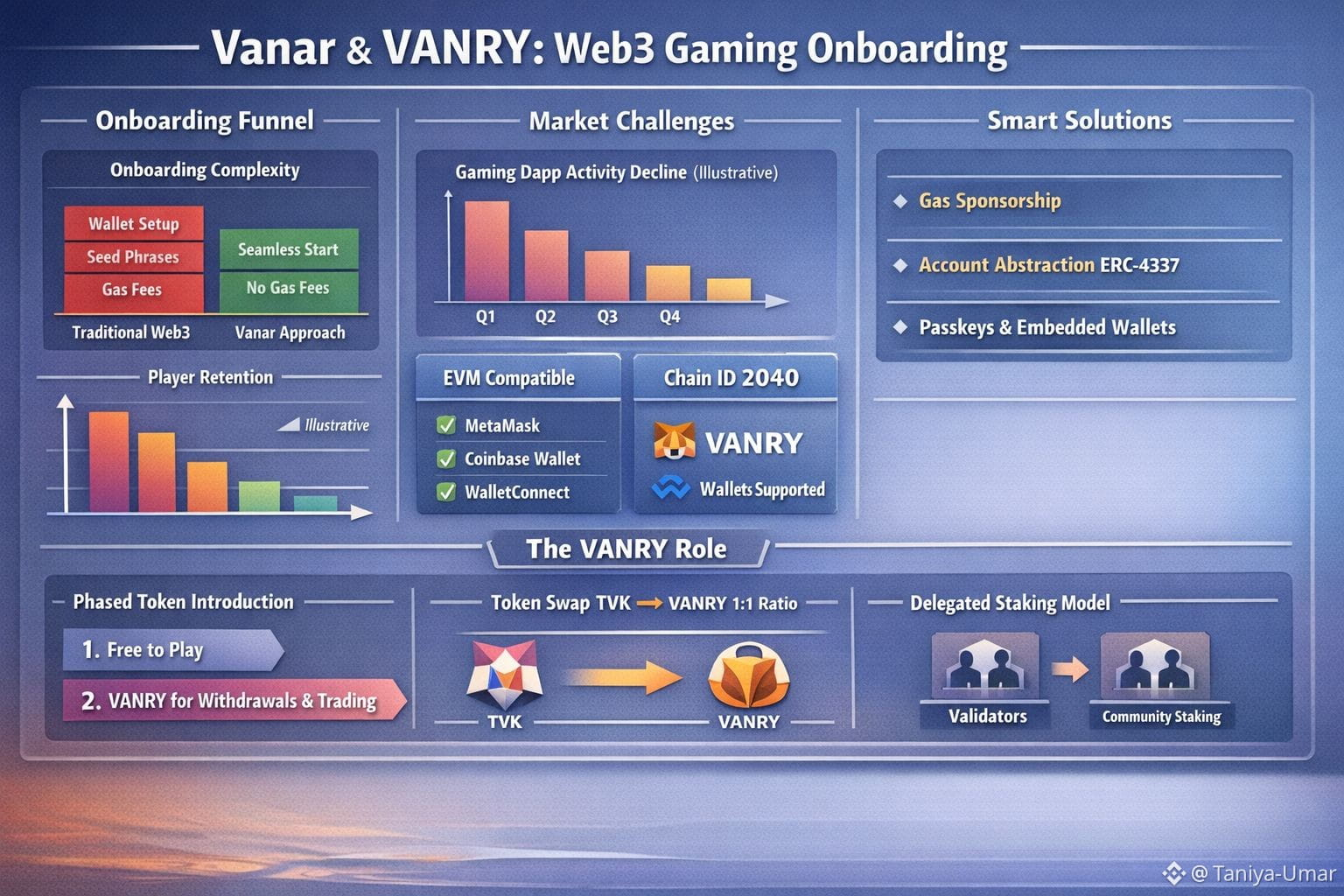 @Vanarchain If we’re being honest, “Web3 gaming onboarding” has often been the polite name for the exit ramp. A game can hook you with visuals and a strong premise, and then—right at the start—it asks you to do a bunch of unfamiliar chores: install a wallet, protect a seed phrase, figure out gas, approve transactions you can’t easily interpret. That’s a lot to demand before someone has even had fun. The more encouraging trend is seeing teams accept that this isn’t “user education.” It’s product design, and it needs to feel as effortless as the game itself. They’re also doing it under real pressure: DappRadar’s 2025 reports described activity sliding quarter over quarter and hundreds of gaming dapps going inactive, which has a way of stripping the romance out of “we’ll fix onboarding later.”