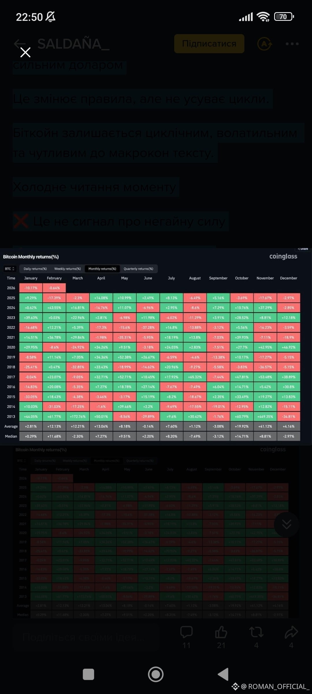 👉 Дно не сформувалося, коли всі говорили про крах, а коли ніхто не хотів нічого знати про біткойн.