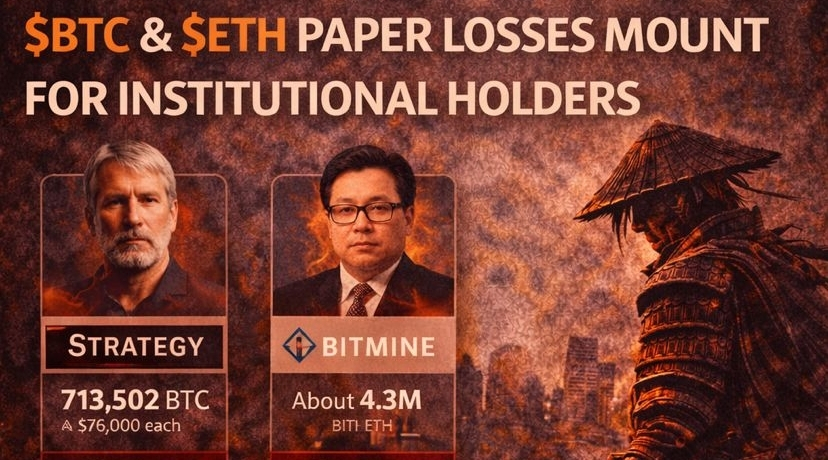 Poiché $BITCOIN è sceso sotto il segno di ~$70.000, alcuni dei più grandi detentori corporate di criptovalute si trovano ora su pesanti perdite non realizzate. Due nomi spiccano: la Strategia di Michael Saylor e BitMine Immersion Technologies sostenuta da Tom Lee.