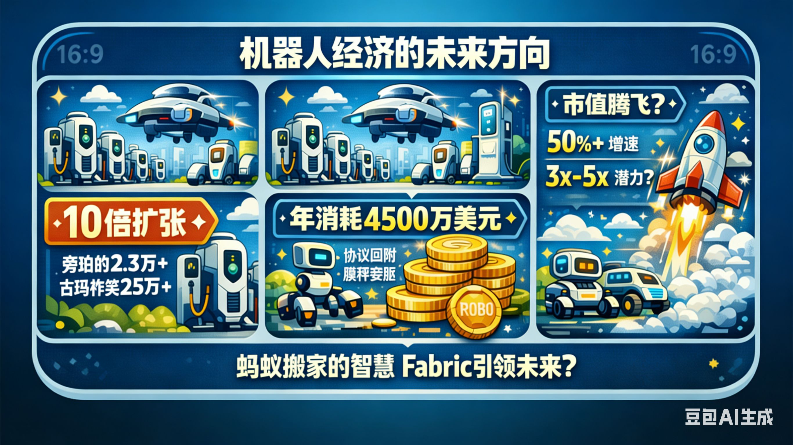如果机器人网络规模扩大10倍,电桩破2.3万,日均任务破25万,年消耗ROBO就冲到4500万美元级别。按20%的协议收入用于回购或质押奖励,对应年需求900万美元。