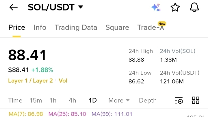 Looking at the $SOL daily chart, we are seeing a classic consolidation phase after a heavy correction. After hitting a low near $67.50, Solana is attempting to build a base around the $88 mark.