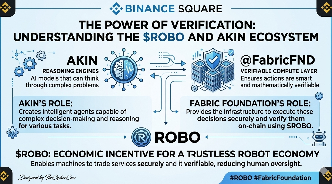Akin koncentruje się na tworzeniu "Silników Rozumowania". Są to modele AI, które potrafią myśleć przez złożone problemy, a nie tylko podawać wstępnie ustalone odpowiedzi. Ale aby zdecentralizowana gospodarka mogła działać, te myśli muszą być wykonywane w sposób bezpieczny. To tutaj @Fabric Foundation wkracza z swoją Warstwą Weryfikowalnego Obliczenia.